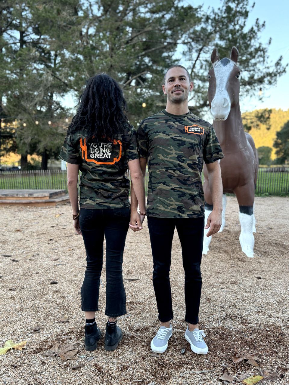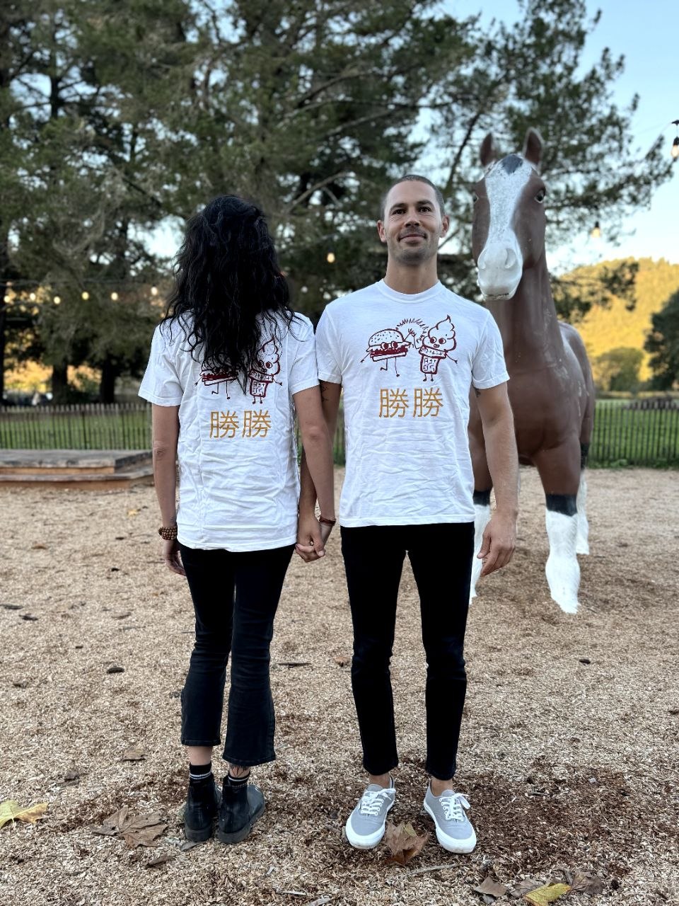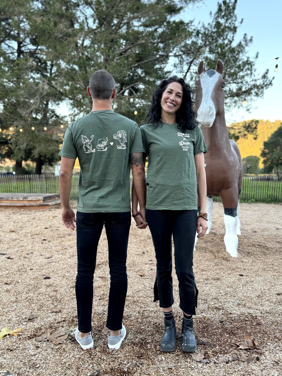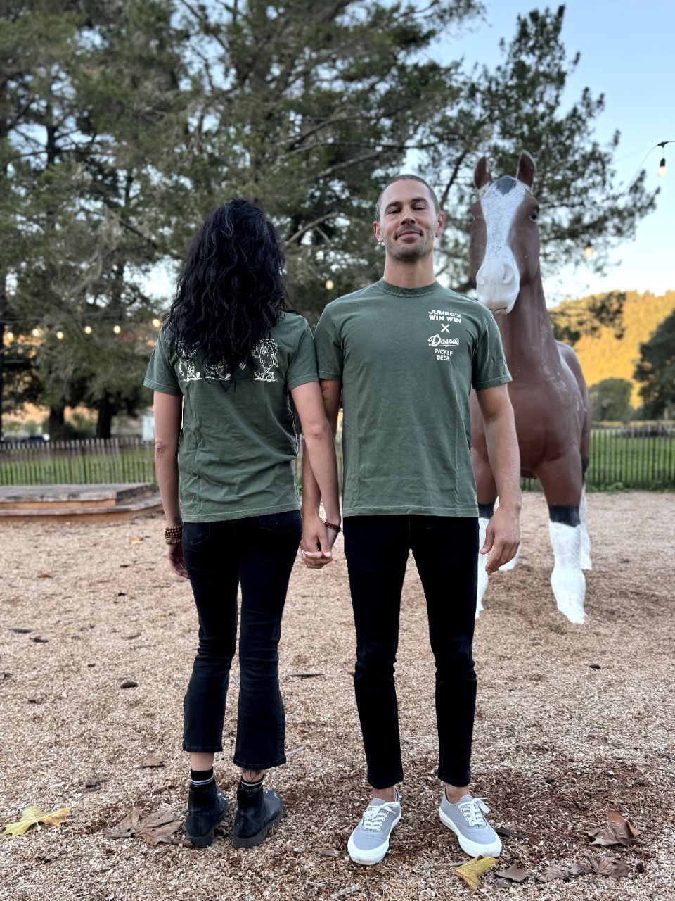 This t-shirt features a variety of designs: Jumbo’s Win Win in black, ivory, and red, The Donna’s on green, ‘You’re Doing Great’ on cameo, sharks on grey and lavender, ‘ice cream and burger’ on white – please see the product photos for examples.